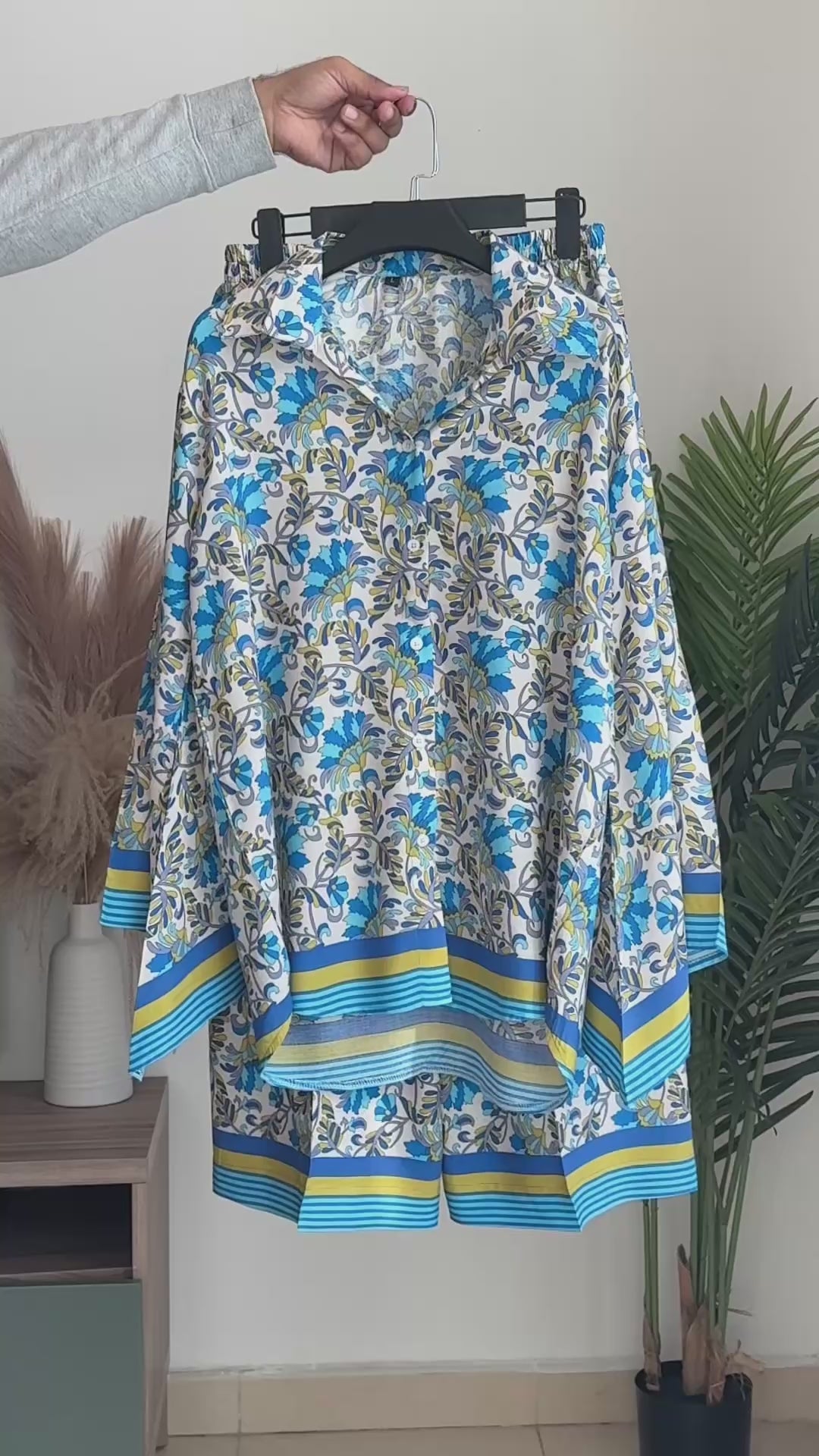 Style: Casual Pattern Type: Printed Closure: Open Top Closure: Buttoned Pants & Shirts Material: Reyon Linen Top: Loose fit Sleeve: Standard...