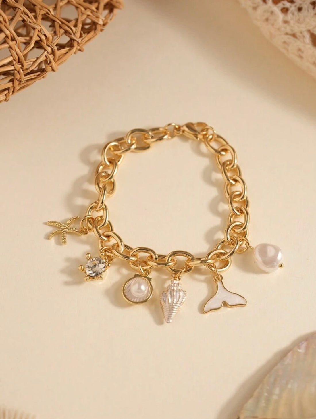 Starfish, Shell, Fish Tail Decor Chain Bracelet