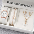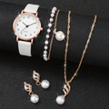 5 pcs Women's Watch Casual Fashion Quartz Watch & Faux Pearl Jewelry Set