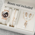 5 pcs Women's Watch Shiny Rhinestone Heart Watch & Jewelry Set