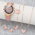6 pcs Women's Luxury Watch & Butterfly Jewelry Set