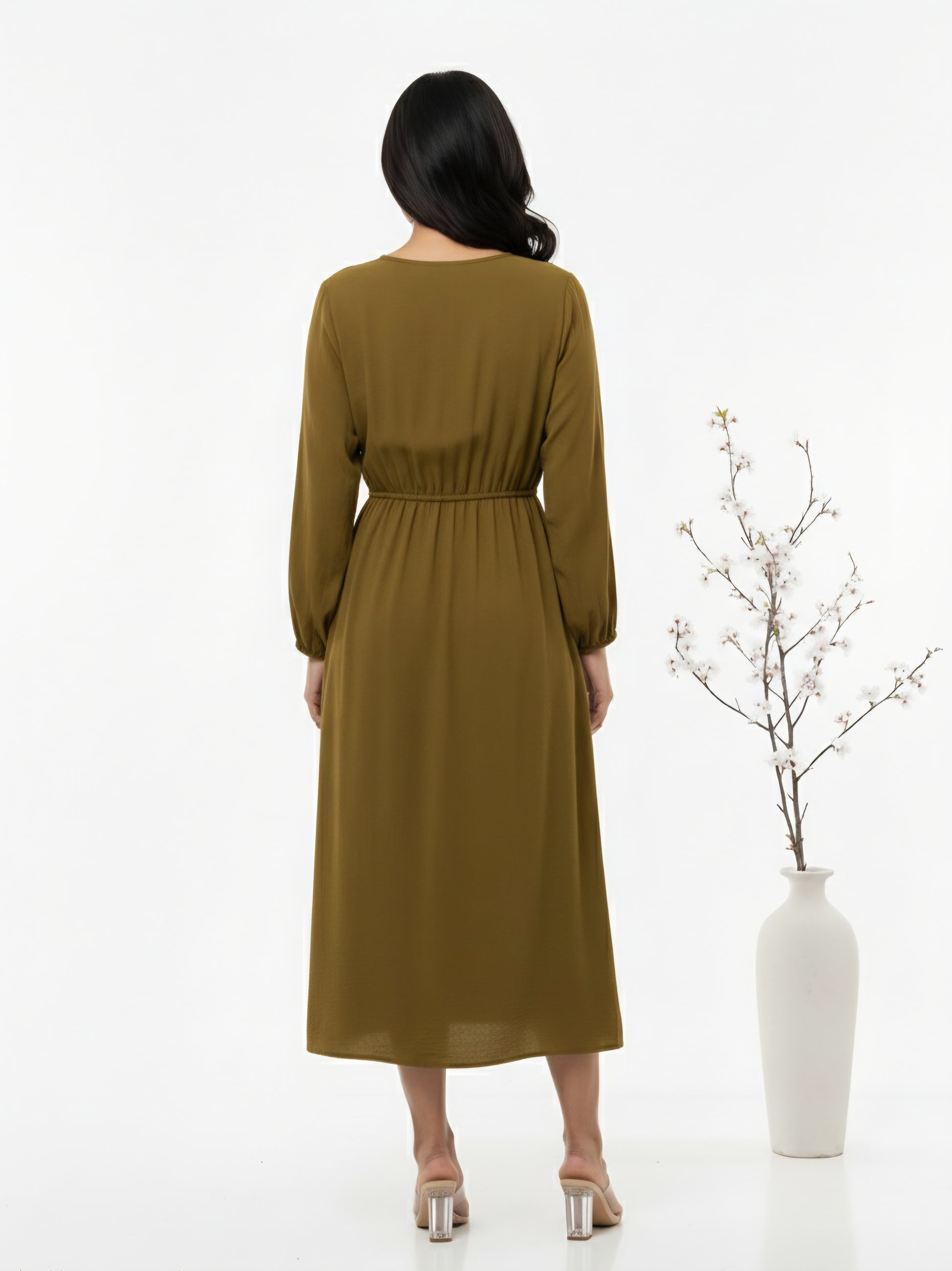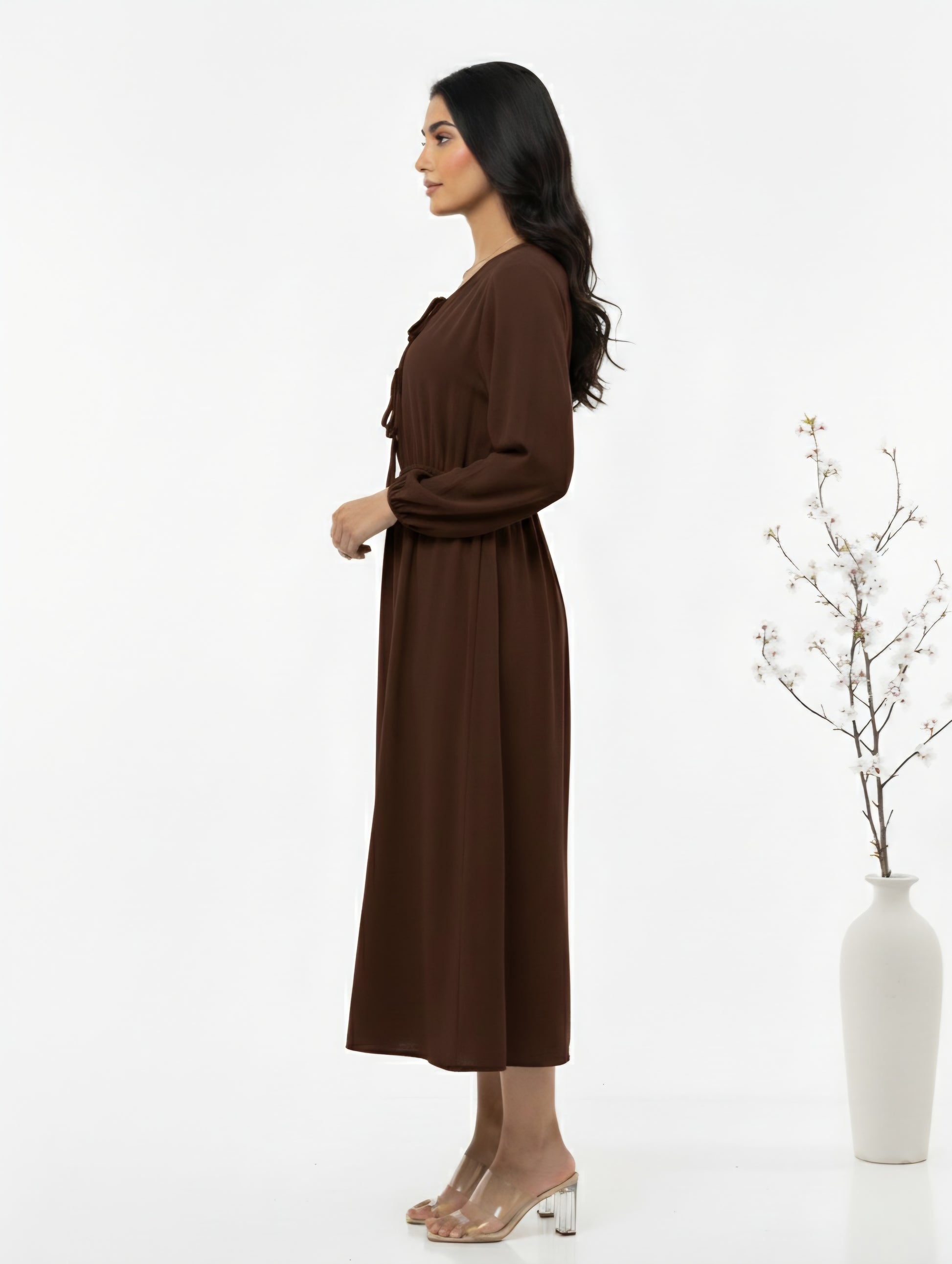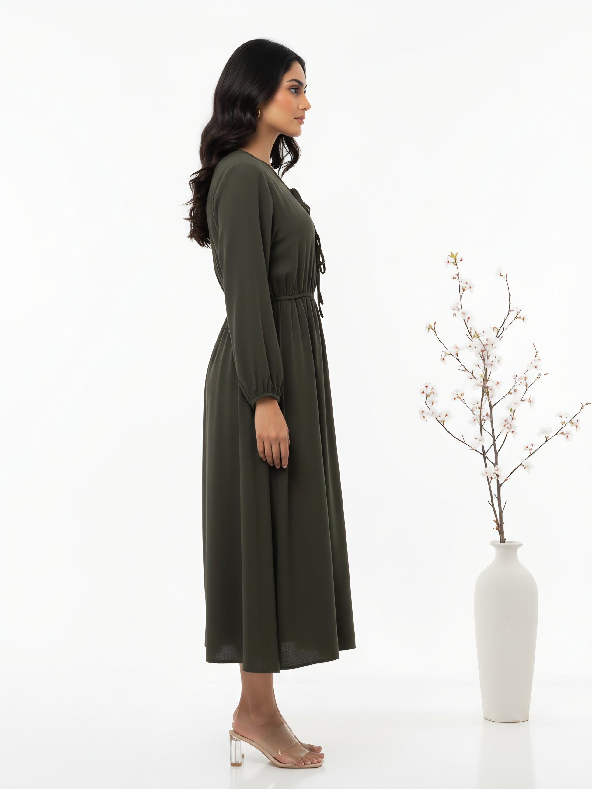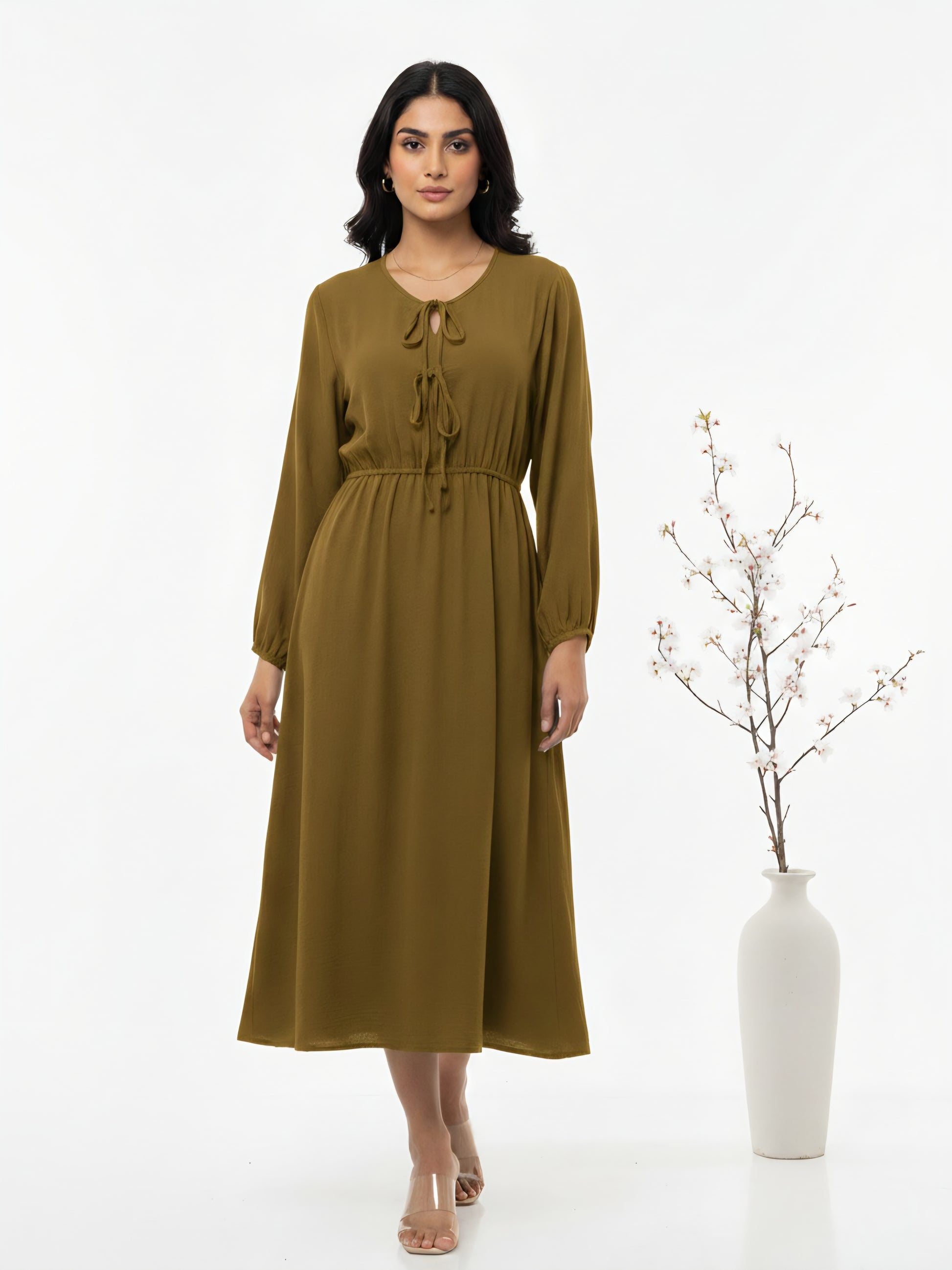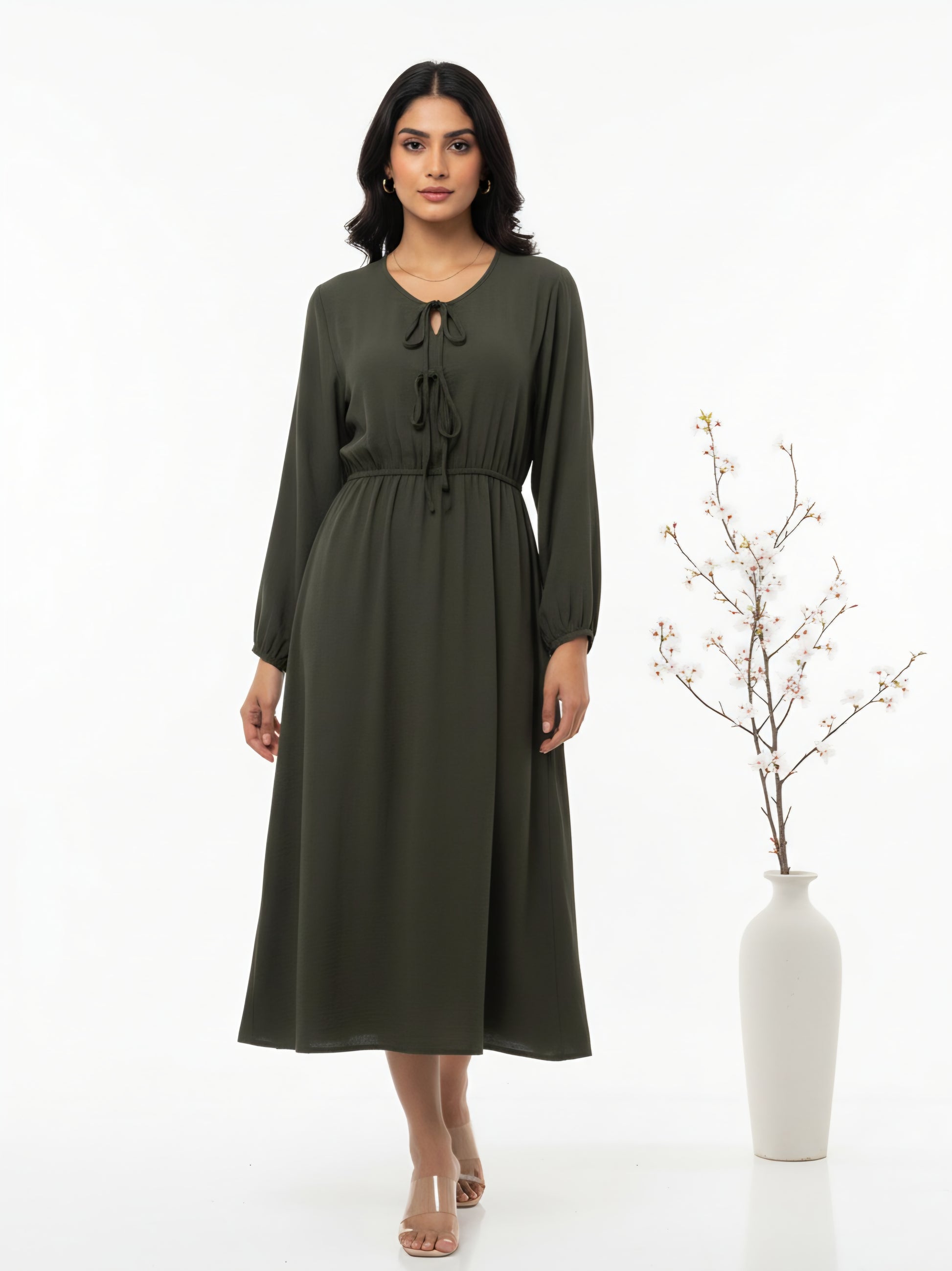 Lace Up Front Midi Dress